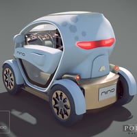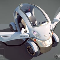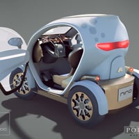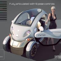A trendy futuristic mini car Nino fully articulated with 5 materials options.