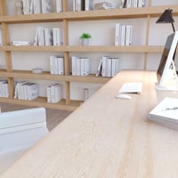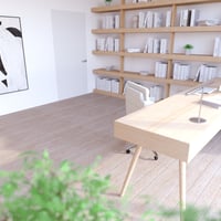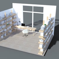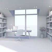 It includes a stylish modern Desk and chair, bookshelf, and other props in the scene.