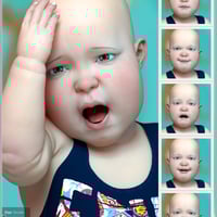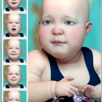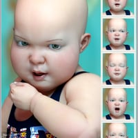 There are 30 expressions, 15 for male baby and 15 for female baby, each one with their dials, and upper face, lower face and full face icons.
