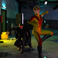 The body shape is rigged against the MM3D Teen base with joint-controlled correctives so your sidekick can strike any pose: leaping into action, throwing that dramatic help! stance, or awkwardly standing around because the adult hero didn't give him anything to do yet.