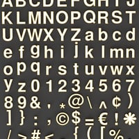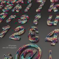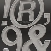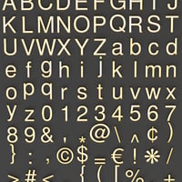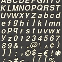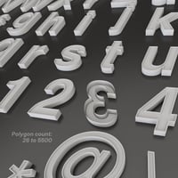 This is a set of 392 font props. The set is separated into 4 styles, standard, bold, italic and bold italic. For each style there are 26 upper case letters, 26 lower case letters, 10 numbers and 36 special characters. All props have 3 surfaces and the set includes 27 Iray shader presets for Daz Studio that can be applied to each surface.