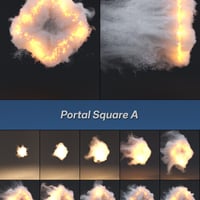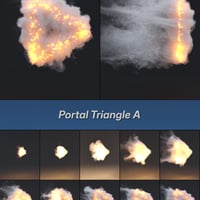 This set contains 150 VDB portals in 15 sequences. The portals come in 3 shapes: round, square, and triangular. For each shape, there are 5 different portal types. Portals A, B, and C all have the gravitational forces of the portal drawn in and back simultaneously. Portal type D has the gravitational force drawn towards the center only, and portal type E has the gravitational force pushing away from the portal center.