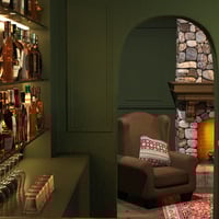 With a stocked bar and a roaring fire, this Modern Cave gets us ready for winter evenings celebrating life.