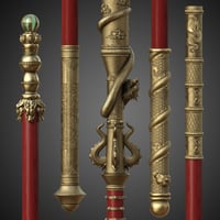 This set includes 5 unique staffs, each designed with intricate details inspired by ancient mythology.