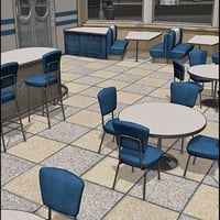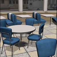 A classic blue palette and checkered floor bring the flavor of the fifties to Moonshine's Diner Interior. Hip Joint is a complete add-on texture for this 3D retro diner set.What's Included and Features