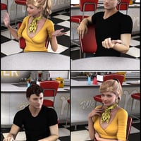 Drop into Moonshine's Diner for a meal with friends after the show! Quickly set up your scene with these easy-to-use poses designed for Moonshine's Diner, Moonshine's Diner Interior I, Moonshine's Diner Interior II, Moonshine's Diner Interior III, Michael 4, and Victoria 4.