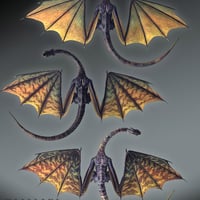 Texture add-on set for the Moorland Dragon . There are sixteen highly detailed textures, each available in three different resolutions, high, medium and low res. Each texture version has a further three trans maps for the wings, which gives a total of forty eight options.