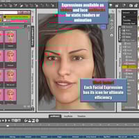 Your facial expression library just got an upgrade with this new set of 61 brand new female expressions created exclusively for Genesis 8 Female that highlight her femininity and magnetic personality. Plus no need to browse through endless sliders with the same name and no icon to find that perfect expression for your illustration or animation. These expressions sliders and aniBlocks all come with a clear icon for visual reference and labeled with a descriptive name so it is easier for you to find what you need. These 61 unique expressions with its well organized, easy to find visual library will be your preferred goto resource for any Genesis 8 Female(s) project.