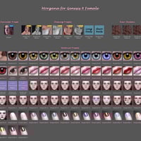Contains a big variety of different makeup colors and styles, artistic makeups with glitter and animal makeups, not to mention the usual nail colors, lipsticks, eyelashes, many eye colors, including fantasy eyes.