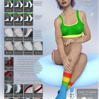 Morphing Socks for Genesis 3 Male(s) and Female(s) and Genesis 8 Male(s) and Female(s) includes a wide variety of colors from everyday to fancy colors, as well as a multitude of styles.