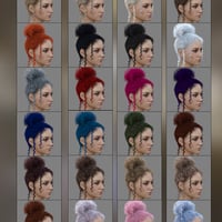 MRL dForce Curly Bun hair combines hair created using fibermesh with Daz's dForce technology to create an ultra realistic drapable curly hair. The hair includes a total of 24 hierarchical MATS in realistic and fantasy shades and a range of stylistic and show/hide curl options. This product also includes the accompanying MATS for the hair and scalp. In addition, the hair has 20 morphs which can be applied pre or post simulation for greater control over how the hair falls.The style of the hair and the range of morphs available are such that it can be used with or without simulation though simulation offers a more physically accurate result. The pack also includes options to increase the strength of the simulation both for the hairline and the bun separately.In addition, the pack includes options to increase or decrease hair shine to suit most lighting setups, options to tighten or shape the curls at the hairline and a small selection of colors for the hair tie.