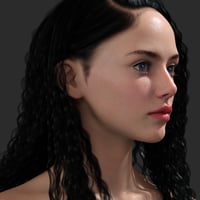 Subtle makeup and lifelike skin shading with gentle highlights and natural subsurface scattering.