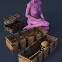 Behold, glistening coins, sparkling gems, and statuettes amazing! Fill out your dragon's hoard, evil wizard's lair, or deep dungeon with these wondrous treasures. These items will also be equally at home populating a medieval home's shelves, or as the centerpiece of a banquet table.