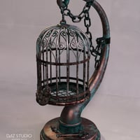Includes a cage, a hanging stand, and a padlock, as well as several props such as a hairpin and key to recreate a great escape or to taunt mercilessly some hapless trapped soul.