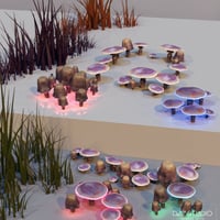 The Muelsfell Modular Path is a unique yet versatile set, with everything you need to create any heroic journey through a fantasy forest. Jump right in with the premade scene or create your own vision with modular branches, foliage, glowing mushrooms and beckoning lanterns. The main terrain piece is modular and tiles in all directions so that you can extend out the landscape as far as you wish. An environment setting gives you a quick nighttime lighting perfect to make the emissive fungi and candles stand out. This set is packed with modular parts and interesting details, as well as texture variants.