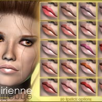 A glamorous beauty for V4 & Genesis. Muirienne comes with a large selection of makeups, lipsticks and eye options which can all be mixed and matched. She has highly detailed skin textures, and a beautifully soft face with defined sculpted lips.What's Included and Features