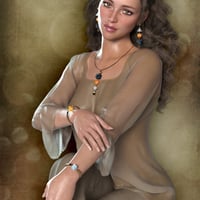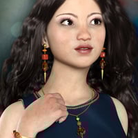 The parts are posable like a real-world pendant and can be adjusted to the figure's poses. The necklace contains morphs to pose the lower part and to adjust it over clothing.