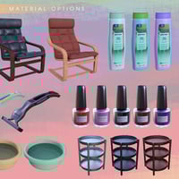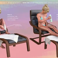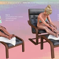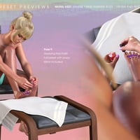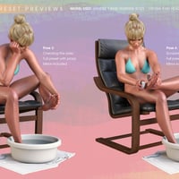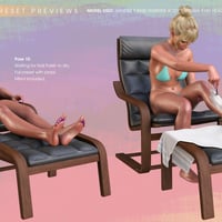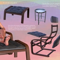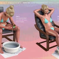 Give your Genesis 9 Feminine the care she deserves with this detailed set of foot and leg grooming props and poses, along with a lounge set consisting of a stylish chair, footrest, and a side table.