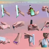 The dForce towel can be simulated as-is or loaded as a smartprop wrapped around Genesis's feet or neck. It also comes with pre-simulated shapes to quickly throw it into your scene! Every handheld item is included both as a smartprop, designed to automatically snap into Genesis 9’s hand for instance, and as a zeroed prop. To add even more realism, lotion/shaving cream smudges are included as Iray Decals, as well as a realistic, smudgy body lotion geoshell for your beautiful Genesis 9 heroine.