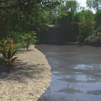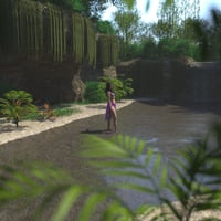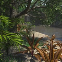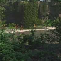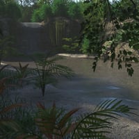 Cross this large and lush rainforest by going upstream and find a small waterfall surrounded by rocky walls covered in vegetation.