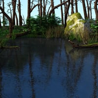 The set consists of a large scale scene, separated into several sections. When working with the full scene, we recommend disabling resource intensive objects, and re-incorporating them just before rendering the scene. This will help to ensure the camera will move smoothly during set-up. Nature - Lake also contains a camera preset for DAZ Studio 4.6, as well as a Light preset for Poser Pro.