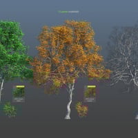 This pack also includes distinct materials for foliage: summer, autumn, and thin branches without foliage, as well as three bark materials, which have been created for trunks and branches.