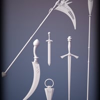 Check out the Daemonia Weapon Collection! Created in demonic forges, these weapons are inspired by various sources: medieval, fantasy or oriental. This pack of deadly weapons includes a short blade that can be used alone or on each hand, a long sword with one or two hands, a short sword either solo or in duo, a curved sword, a scythe, and a spear.
