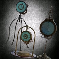 To add a note of originality or to personalize a steampunk decor, here are three different clocks, a street clock that can also be added indoors. A small clock and a third of medium size made to be placed on a piece of furniture or on the floor according to your desires.