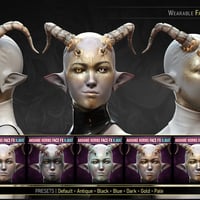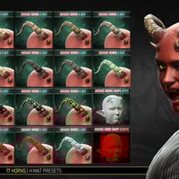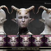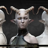 Horn Props & Socket Morph | A wearable preset will load the two sets of Horns (small and big) alongside the socket morph that ensues their proper placement. The props are static followers which can be toggled on & off easily. This pack also provides 17 Horn Hierarchical Material Preset (three different styles plus variations) and two Shaping Presets (to toggle the sockets on and off).