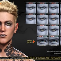 Like our previous characters, we included 07 Skin Settings Material Presets (and a separate preset supporting DAZ's Male Anatomica Elements) to make the most out of his skin. On top of that, we included three Metallic Material Presets (six presets in total since it has the Male Anatomical Elements support as well) to endow him with an ethereal look.