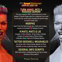 You thought Anael Bishonen was quite devilish? Well, now you can turn him into a playful demon with this expansion! Anael Demon serves as a bridge between Anael Bishonen (skin textures) and Wang 9 Demon Shape Add-On's tail, providing the needed textures to complete the look and expand your demonic ranks.