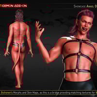 Anael Demon does not have complete skin textures. Instead, it uses Anael Bishonen's Texture Maps and adds compatibility and support with DAZ Wang 9 Demon Shape Add-On's Tail. This means you will get the best out of this character if you also have that shape.