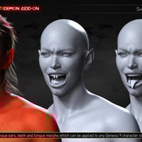 Anael Demon uses Anael Bishonen's Body and Head morphs but adds new details, giving his features a more brutal, demonic look. Complete with a new set of sharp ears, deadly teeth, and a wicked reptile tongue!