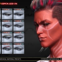 In addition, Anael Demon also provides 08 Hierarchical Material Colors for his Eyelashes and 08 Hierarchical Material presets for the eyebrows (part of the Genesis 9 Essential Expansion pack, sold separately).