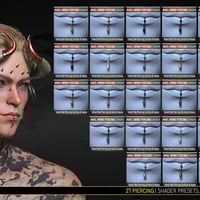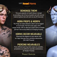 "NDFP Anael Horns" expands upon NDFP Anael's demon concept by providing a set of Decorated Horns and Face Jewelry to embellish your Genesis 9 characters. The horns can be placed using one of the two socket morphs included in the pack.