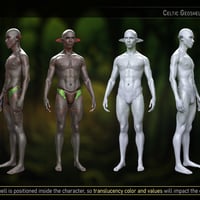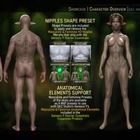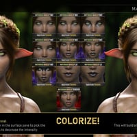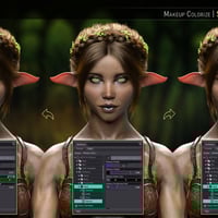 As with our previous characters, Silvan and Silvana come with a full custom skin and two sets of torso maps, featuring H.MAT presets that support DAZ's Male and Female Anatomical Elements. We also included 11 different skin colors by adjusting the surface settings of the skin within DAZ 3D Studio. Nine makeup options created via Masks you can colorize using the surface setting will provide even more variation!