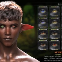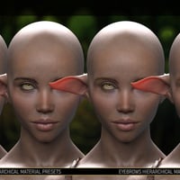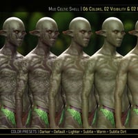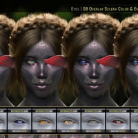 The druids' striking eyes come in 16 different colors, further customizable with 08 sclera options and a way to toggle off the emission for a more natural look. Each character has their own set of eyebrows (available via the Genesis 9 Essential Expansion pack, sold separately), with 04 hierarchical material colors for their eyelashes and eyebrows.