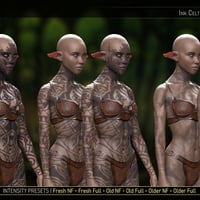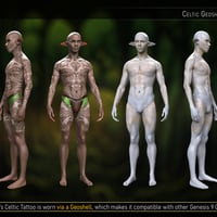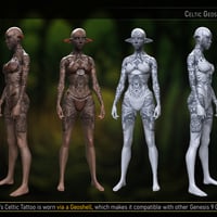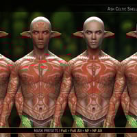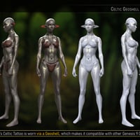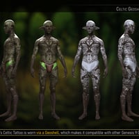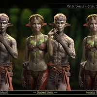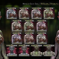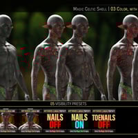 To further enhance their appearance, we included a Celtic full-body design available in different textures: ash, ink, magic, metallic, and mud. Each of these textures is applied via a Geoshell, which ensures a non-destructive workflow and allows them to be stacked for even more options. We also included a general dirt Geoshell, which can also be stacked with all the shells except the Celtic mud.