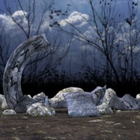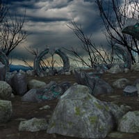Neitherhenge comes to you with six unique arch props in various states of ruin, as well as a ground terrain prop to arrange them on. Low poly rock props surround the outer ring of the terrain, and each arch prop loads with a separate rock cluster prop that can be independently controlled. The rock and ground props feature tiling UV's, so that the texture resolution remains high while using smaller texture files for computer memory conservation. The Arches themselves use high res textures for great looking results in up close shots, and MATs to apply glow to the runes. Neitherhenge is toped off with a prearranged multi prop of the entire site, yet you are still able to arrange as you see fit for your renders.