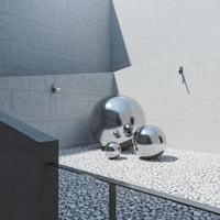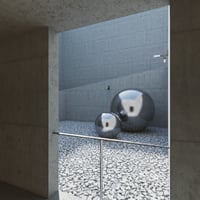 The square building features a unique architectural design with a flowing staircase that spirals gracefully around its walls, providing both functionality and aesthetic appeal. At the centre lies an atrium, which serves as a serene focal point, filled with lush greenery or an elegant arrangement of smooth pebbles complemented by reflective gazing balls. This combination of natural elements and thoughtful design creates a tranquil atmosphere, inviting visitors to pause and appreciate the harmonious blend of indoor and outdoor spaces.