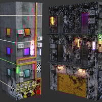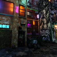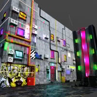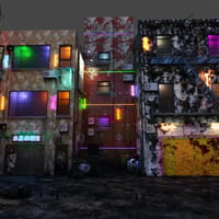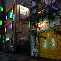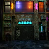 Neo City Alley consists of 6 separate buildings and terrain. It is an old, abandoned street with colorful neon lights, industrial architecture, and street art. All windows and doors can be opened and closed and each of the buildings is created of separate props.