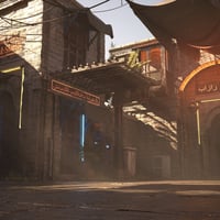 Step into Neon Bazaar, a gritty fusion of Middle-Eastern architecture, neon haze, and dense urban tech. Weathered facades, glowing frames, tangled cables, and atmospheric dust come together to form a hyper textured street world bursting with cinematic energy. Perfect for action, noir, and futuristic storytelling.