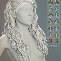 Neona Hair is a morphing, polygonal model of chest-length, wavy hair with cornrow braids on one side of the head. The hair is fitted for Genesis 3 Females, as well as Genesis 8 and 8.1 Females (.DUF), with auto-conforming custom morphs for Daz Original characters.