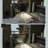 All parts load separate, as divided sets or as a fully loaded set. All doors are on dials and the spinning water wheel spins. Sewer caps open with small crawl spaces beyond. The side tower comes with interior stairs. Long live the Never World!