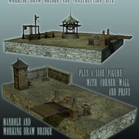 There's always room for more Never. I have had a great time with the sets so far but I thought there was a need for a common area. I did the Never Square to bridge the gap between sets, and yes I included a real draw bridge. There's a public privy and a well, placed well apart of course. 3 main figures with matching props to share with your other Never sets.