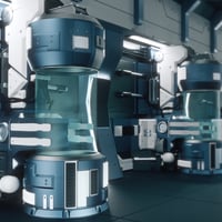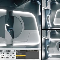 a customizable modular sci-fi lab with human-sized test tubes and an animatable door,
