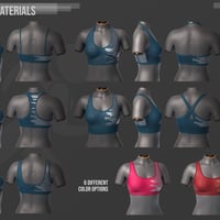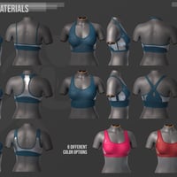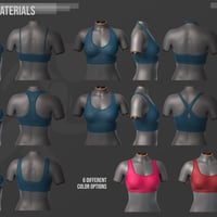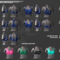 Sporty Spandex includes a more modern textured feel with 6 different colors and 4 different patterns for each color (checkered, dots, hex, and plain). The sporty logo is placed centered on the back and has a metallic material matching the stripes. Metallic "Sporty Girl" text can be added to any texture on the Racerback and Sports Scoop bras.