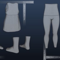 There are seven different material presets for each piece of clothing. Each includes a white texture so you can change the base color to any preferred solid color. (Note: to change the socks you must select them and all four geo shells and their materials before changing the base color)