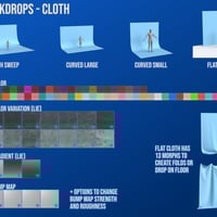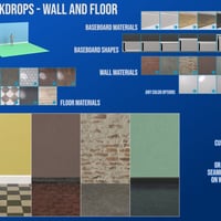 Choose your backdrop from various options depending on your spacing from the character. For the backdrops, you can customize the color, add LIE color variation and gradients, bump map textures, and roughness modifications to create a unique background. Or select the wall/baseboard and floor option with accompanying materials to create a realistic home/building setting. All backdrops are also set up so you can change tiling and apply your own seamless texture shaders easily.