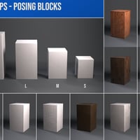 - Posing Blocks (Grainy Plastic Any Color, Spotty Plastic Any Color, Weave Plastic Any Color, Brass Plated, Fake Plaster, Speckled Plastic, Transparent Acetate, Wood Cedar Varnished, Wood Oak Aged, Wood Walnut Varnished)